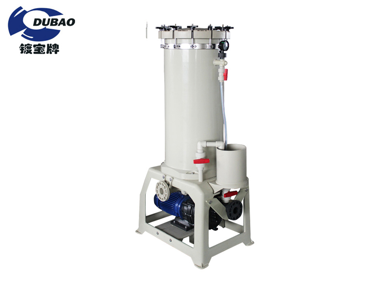 鍍寶牌PP過濾機產(chǎn)品特點: 1.采用無軸封泵浦,無泄漏之慮?! ?.電鍍過濾機主體與底座采用PP材料一體射出成型,焊接點極少,具耐高溫、耐酸堿等特點。 3.濾心式設(shè)計,高精密過濾,過濾面積廣、...