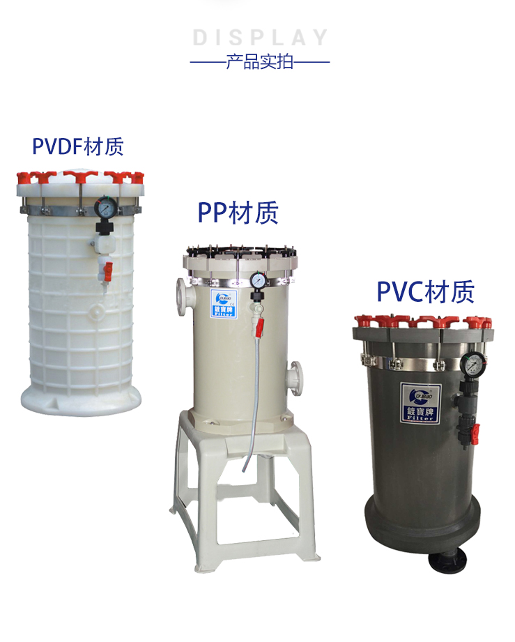 1、本過(guò)濾器上下主體均采用特厚PP板制作而成,濾桶可選用PP、PVC及亞克力制作,具有耐高壓、耐腐蝕之特性。